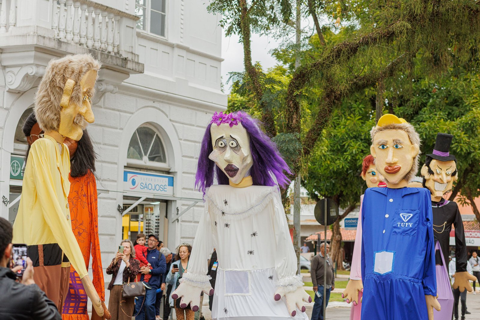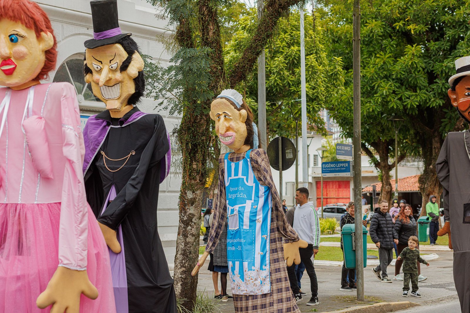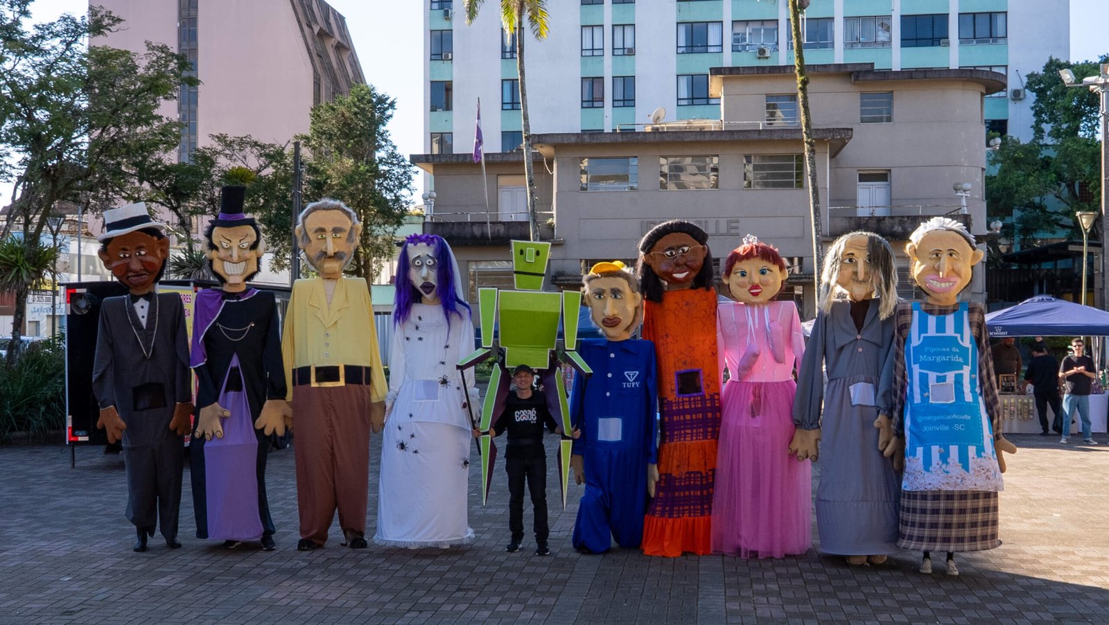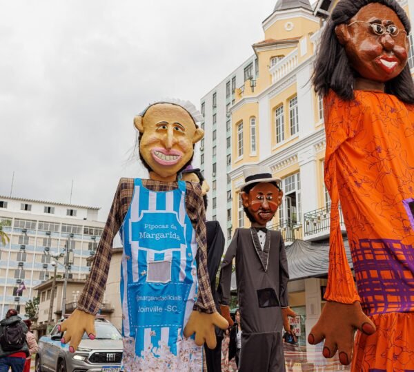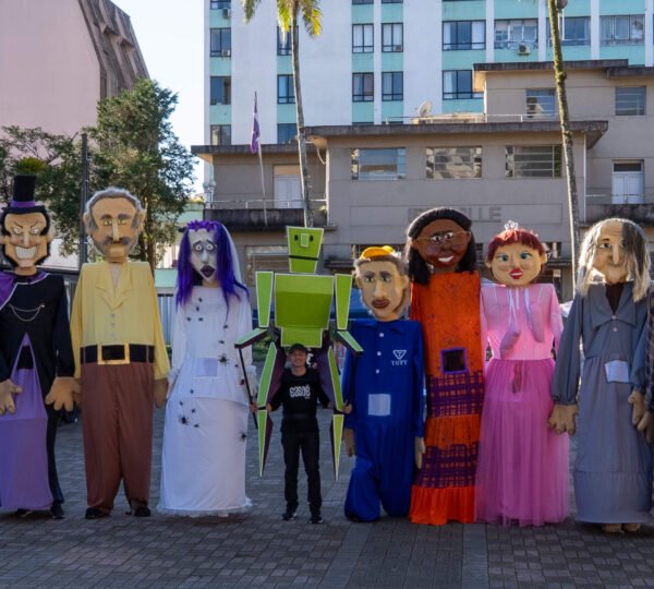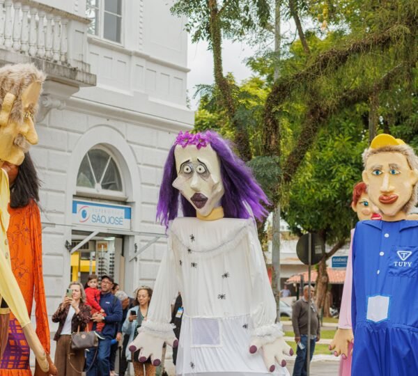 “Bonecos Gigantes de Joinville” é um projeto de teatro de animação e cultura popular criado pela Essaé Cia que leva às ruas personagens inspirados em figuras marcantes e lendas urbanas da cidade. O conjunto reúne 10 bonecos gigantes, que representam personalidades, histórias e símbolos da memória cultural joinvilense. Entre eles estão Mestre Bera, Rosa do Pé Inchado, Dona Fioca, Chapeludo, Dona Margarida, Moço Bonito do Baile, Noiva da Ponte, Bailarina, Trabalhador da Indústria e o mascote Neco Maneco.