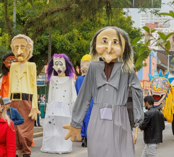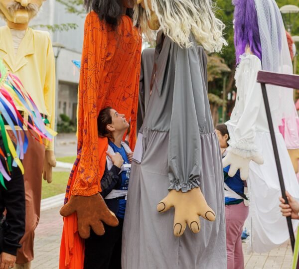 As primeiras aparições públicas em cortejos e no Carnaval de Joinville, levando ao público uma celebração visual inspirada na tradição dos bonecos gigantes presentes em manifestações populares brasileiras. Mas nossos Gigantes já participaram de exposições e também de Cortejos do ANIMANECO – Festival Internacional de Teatro de Bonecos.