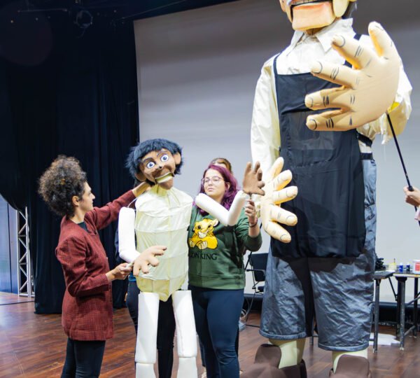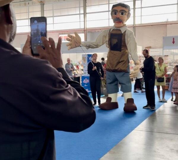 Nesta intervenção teatral itinerante, os personagens clássicos Gepeto e Pinóquio surgem em espaços públicos, festivais e eventos culturais, convidando o público a participar de jogos cênicos, brincadeiras e momentos de improviso. Inspirada na tradicional história do boneco que sonha em se tornar um menino de verdade, a ação mistura teatro, animação e interação direta com o público, aproximando crianças e adultos do universo dos contos clássicos e do teatro de bonecos.