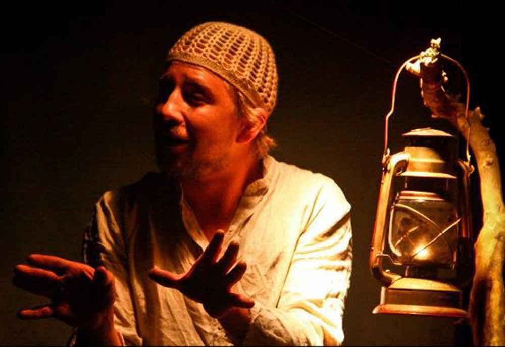 O ator, único em cena e suas mímicas, pantomimas, vozes e gestos que compões o cenário.